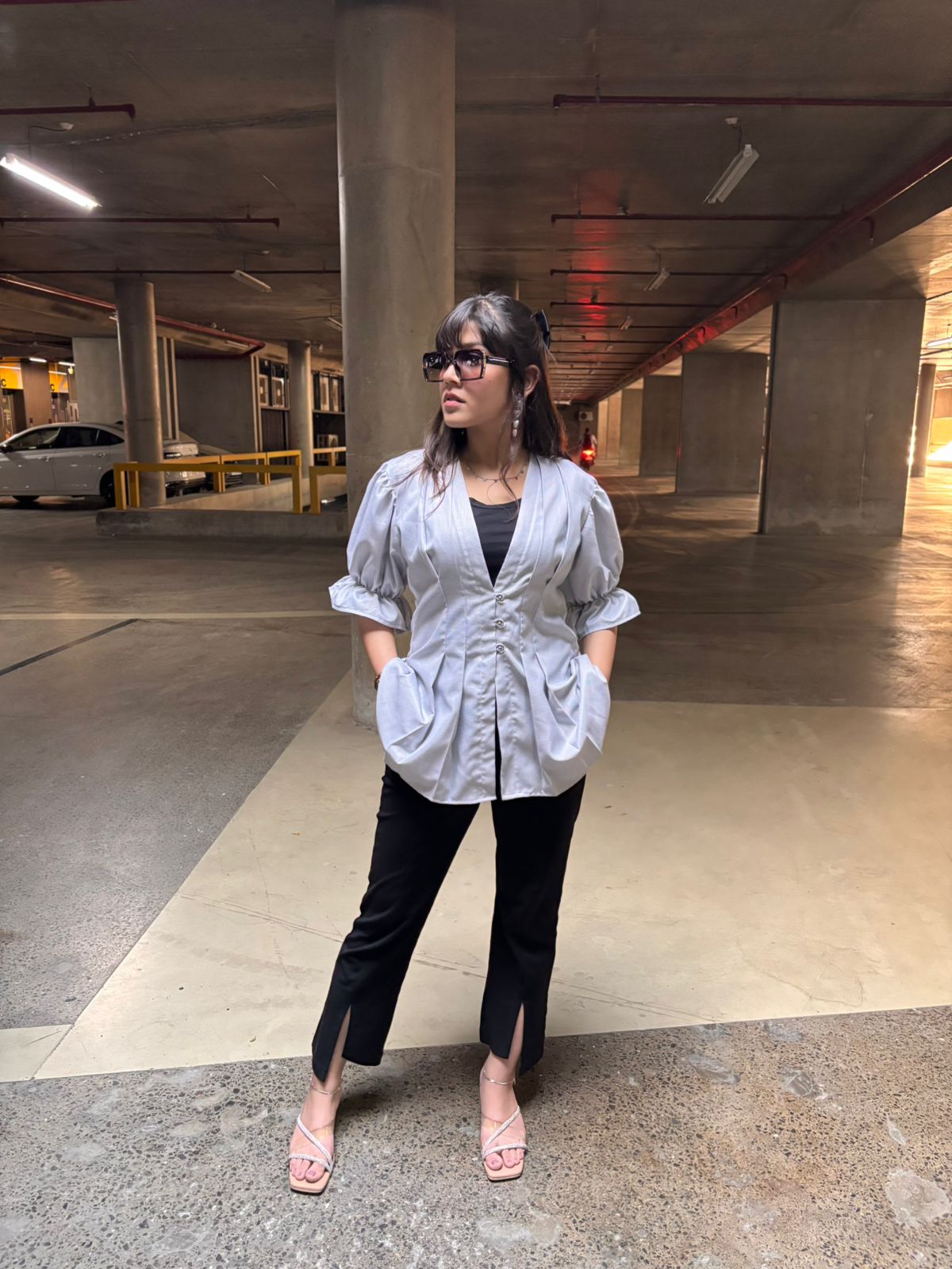 Architectural pleat puff sleeves shirt